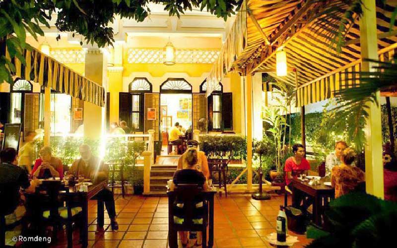 This dining spot serves excellent Cambodian cuisine. The setting is peaceful with the little garden ambiance. It is possible to order Thai dishes.