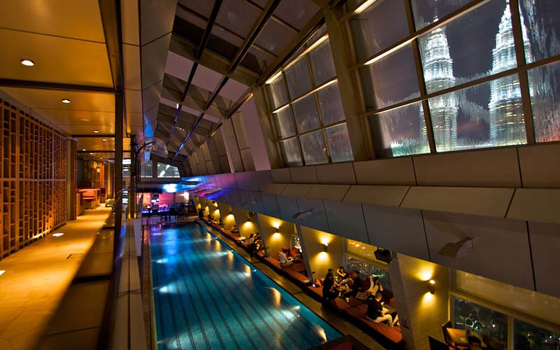 Sky bar is a classy lounge in Traders Hotel KL. It is the best destination if you are looking to spend a quiet night out away from the busy streets of KL. Sky Bar has an extraordinary view of the whole city. The centerpiece at Sky Bar is a pool that is bordered by ‘cabanas’ on one side, and a bar area on the other.