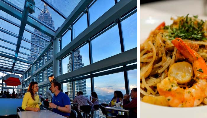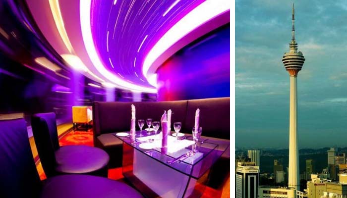 The atmosphere 360 restaurant in Kuala Lumpur has the highest view of the city. At 276 m above sea level, the observation platform of Menara KL lies about 100 m higher than the sky bridge of the Petronas Twin Towers. The tables are arranged in a single line around the restaurant, right next to the floor-to-ceiling Windows: when you sit for the first time, you don't notice that the restaurant is moving. Then, after a few minutes, you will realize that the outside world is moving or that your table is changing places.